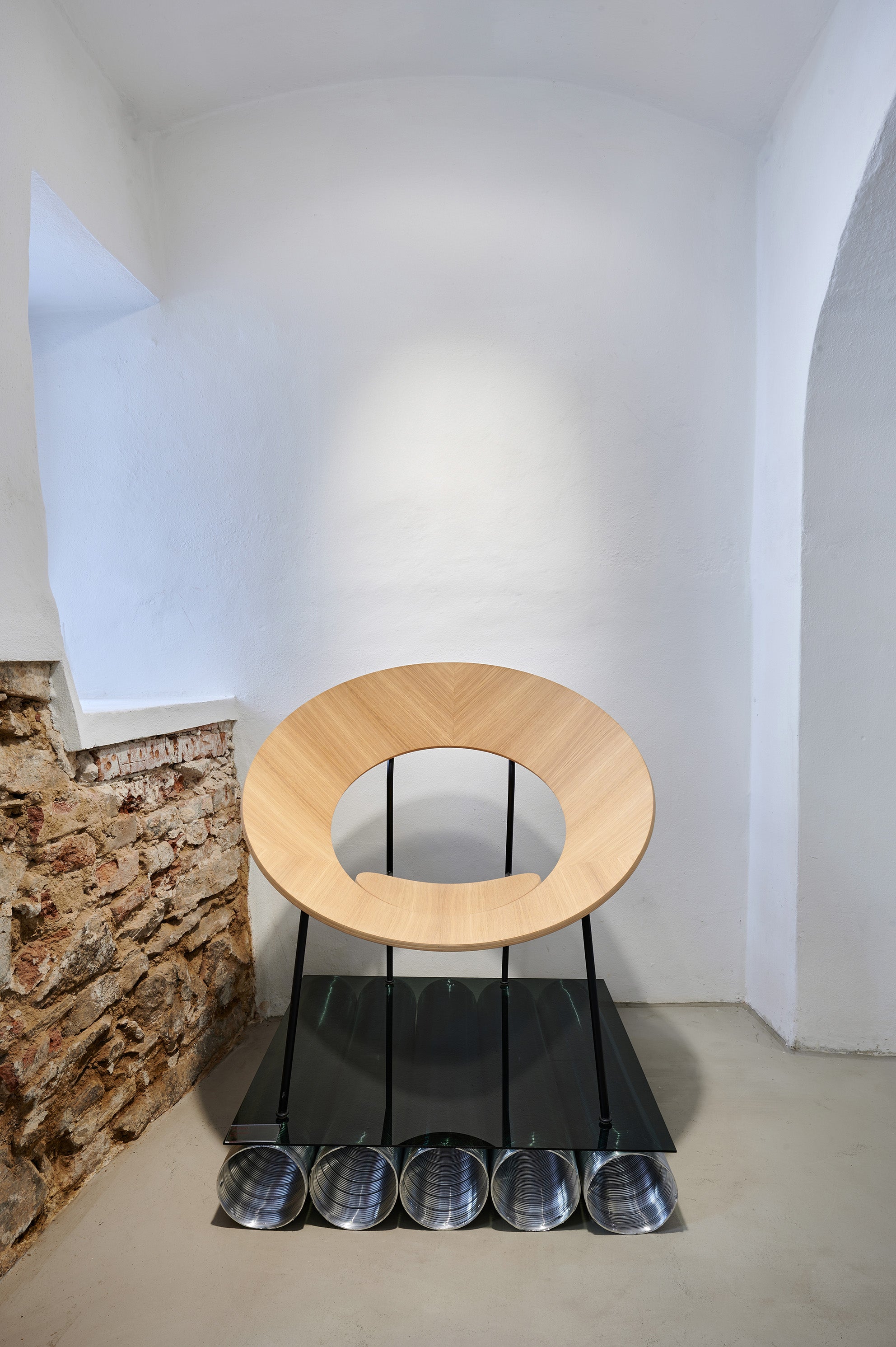 Instalace od studia Palma de alma a architekta Jana Šefla byla doslova postavena na hrubých stavební materiálech, které odkazují na počátek stavby. Spolu s pohledovým materiálem jako je opracované kouřové sklo nebo zrcadlo, které naopak odkazuje na finální řemeslné dokončení, vytvořili zajímavý kontrast a dali skvěle vyniknout našim výrobkům. Nábytek tak byl zakomponován do industriálně řemeslného prostředí se špetkou lesku. Galerii Neumannka děkujeme za pozvání, jsem moc rádi, že jsme měli příležitost naši kolekci prezentovat publiku v Prachaticích.
