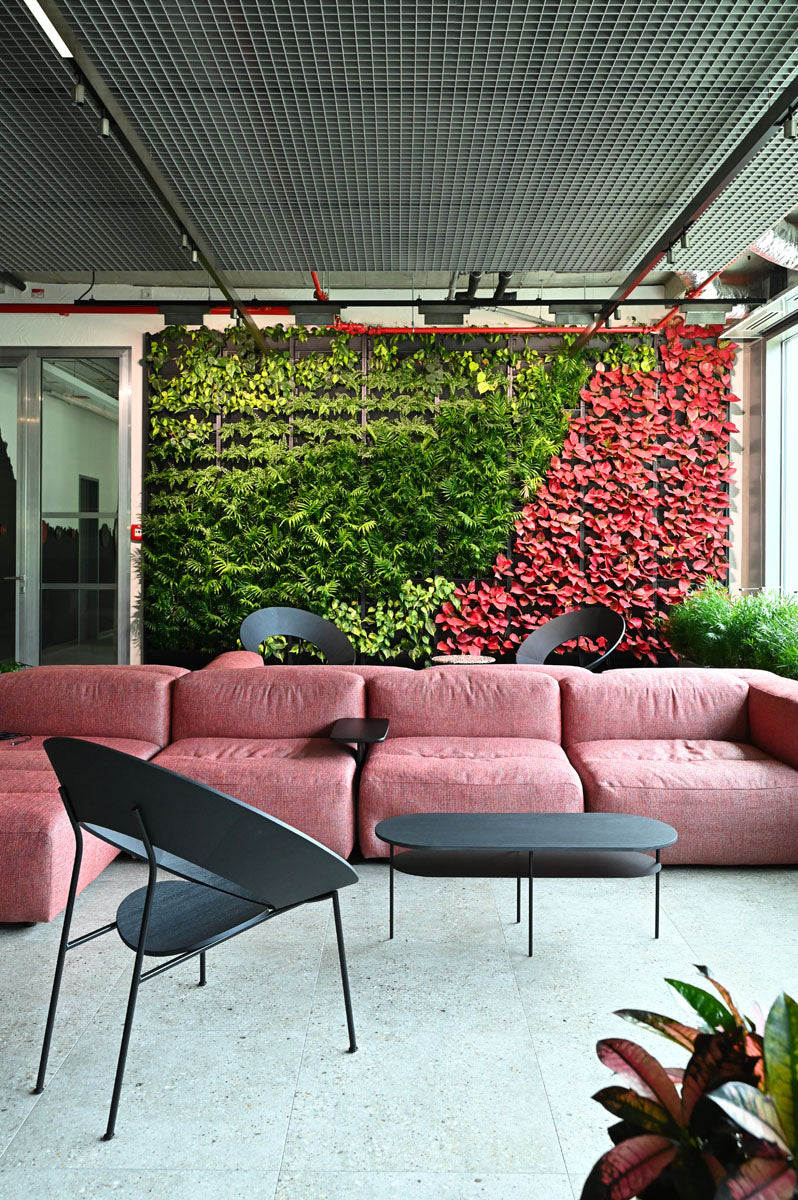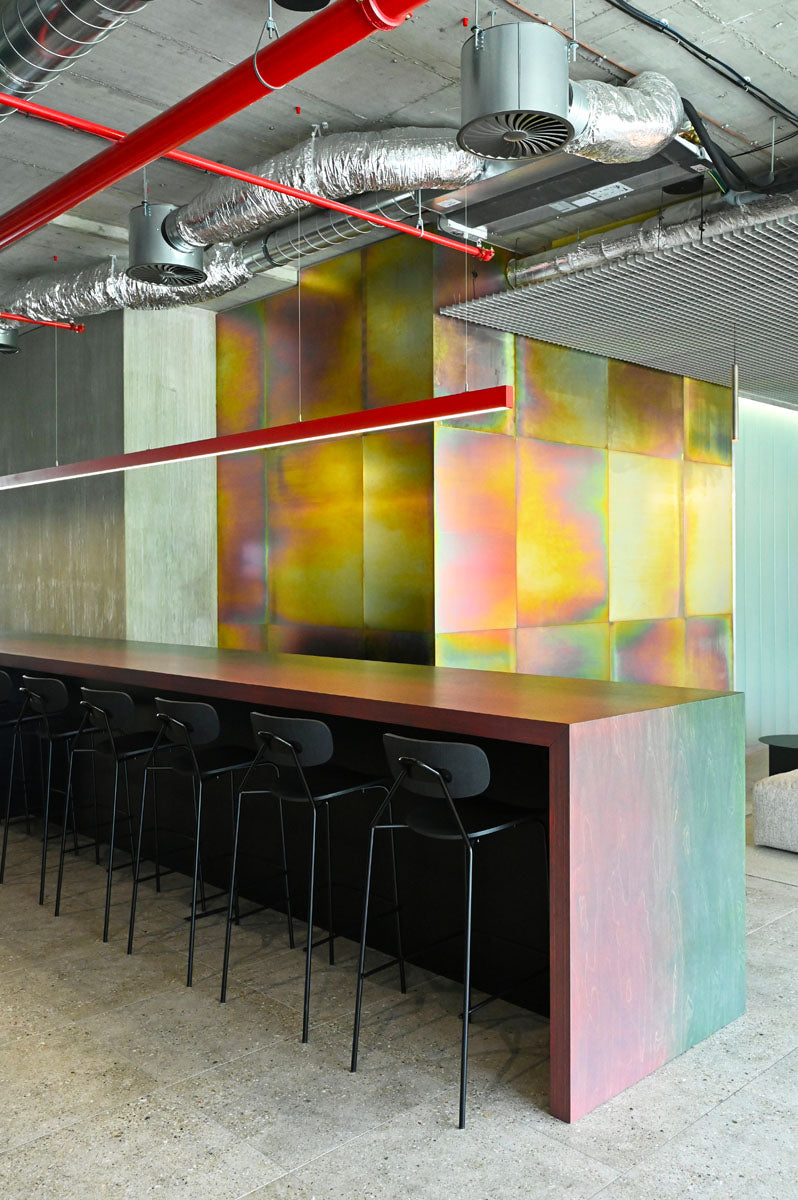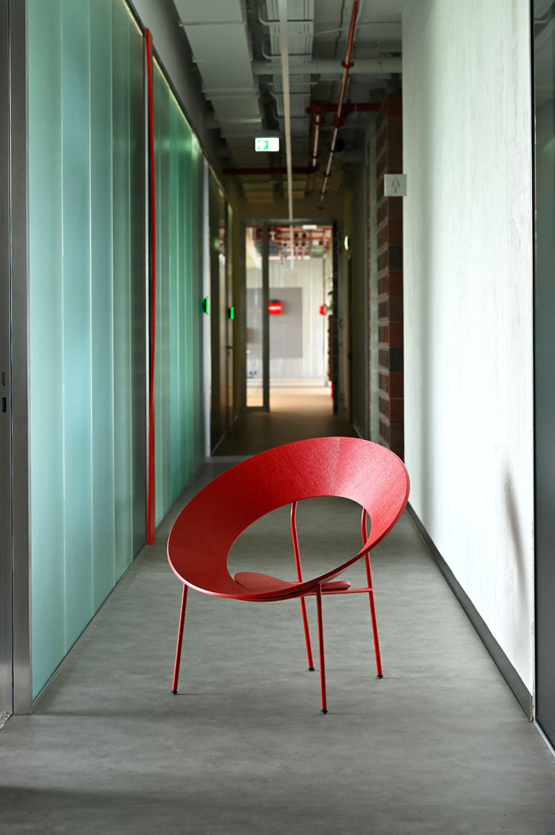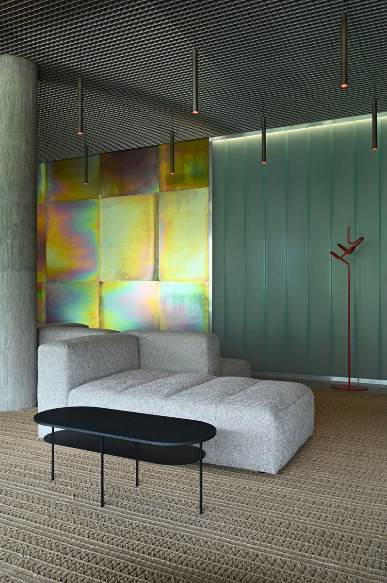 Prostory jsme obohatili o židle a barovky z kolekce Mistra v elegantní černé variantě (24 ks), stoličky UM Stool (7 ks) a 19 křesílek Cocon, z nichž 4 kusy jsou v červené barvě, signifikantní pro značku a výrobky Hilti. Atmosféru dotváří stolky Cocon (11 ks) a několik policových systémů Shelf One (17 ks). V prostoru kanceláří také slouží praktické věšáky Spaghetti (14 ks).