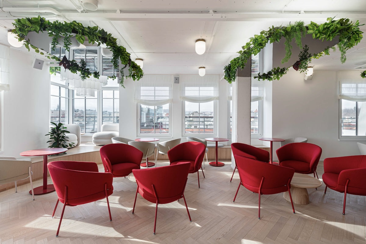 - 10 barových židlí Mistra v atypickém rubínově červeném provedení
