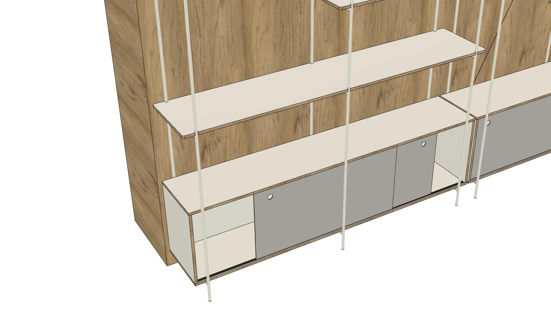 Knihovna prošla několika úpravami, než jsme našli optimální řešení, které splňovalo všechny požadavky a zohledňovalo specifika prostoru. Na přiložených vizualizacích jsou zdokumentován vývoj knihovny.