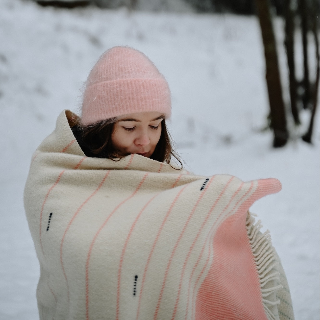 Sunset je 100% vlněná deka, která propojuje přírodní materiál a tradiční výrobní techniky se současným designem a barvami. Design deky Sunset tvoří barevný gradient inspirovaný atmosférou při západu slunce. Velká etiketa s logem odkazuje svojí grafikou k vlněnému materiálu, zatímco malá udržovací etiketa obsahuje informace o materiálu, autorech designu, zemi původu a v neposlední řade také důležité poselství: Share the warmth, spread love. :) Rozměr 140 x 200 cm vám poskytne dostatek komfortu a tepla nejen během chladných večerů. Deka vyrobena s péčí v České republice.