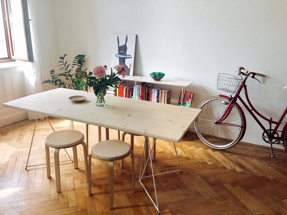 Naše ikonické ocelové podnože Diamond o výšce 73 cm jsou skvělým doplňkem pro váš byt, ateliér nebo galerii. Jsou snadno stohovatelné a přenosné, dokonce i ve větším počtu. Můžete je kombinovat s našimi stolními deskami Diamond Tabletop nebo s jakouliv jinou deskou v libovolného rozměru a materiálu. Je však důležité si uvědomit, že tyto podnože nejsou určeny k připevnění ke stolové desce. Pokud hledáte nohy, které lze připevnit, doporučujeme se podívat na naše podnože Reverse.